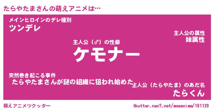 | 2回繰り返すあだ名 | 『たらたら』『たたらら』『ぷりぷり』 |
