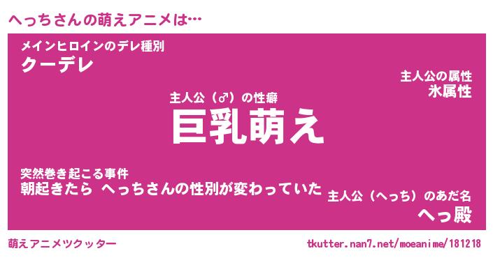 | 男性向けラノベタイトル風あだ名 | 『へっちの憂鬱』 |