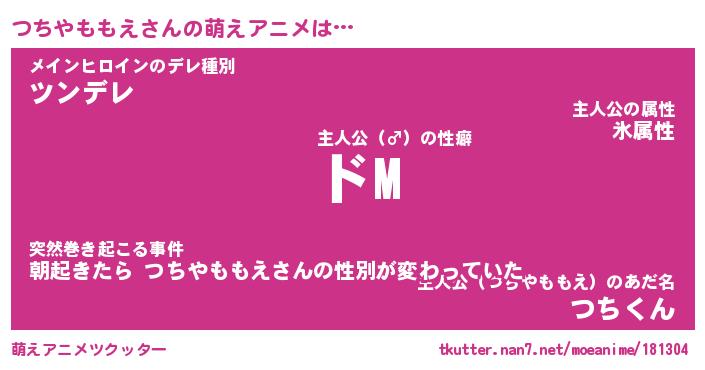 | 男性向けラノベタイトル風あだ名 | 『つちやももえの憂鬱』 |