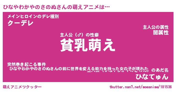 | 男性向けラノベタイトル風あだ名 | 『ひなやわかやのさのぬの憂鬱』 |