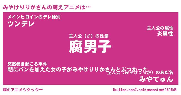 | ヒーロー風カッコイイあだ名 | 『スーパーミヤケリリカ』『暗黒騎士ミヤ』 |