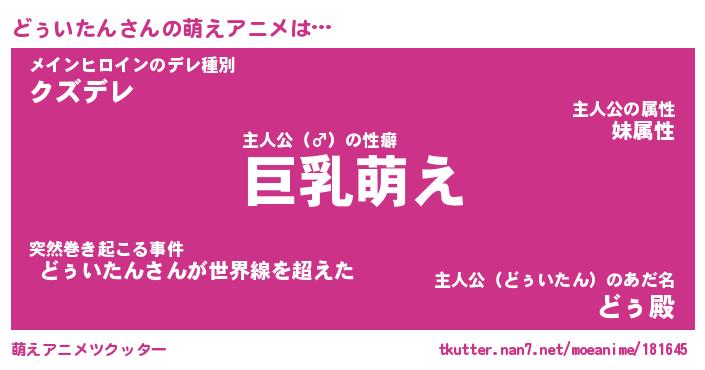 | 男性向けラノベタイトル風あだ名 | 『どぅいたんの憂鬱』 |