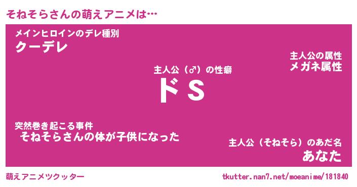 | 男性向けラノベタイトル風あだ名 | 『そねそらの憂鬱』 |