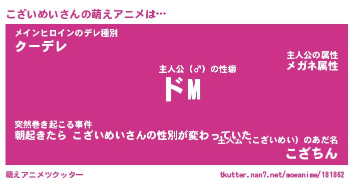 | 男性向けラノベタイトル風あだ名 | 『こざいめいの憂鬱』 |