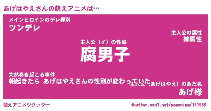 | ファンタジー風あだ名 | 『アゲフェル』『エターナルアゲハヤエー』 |