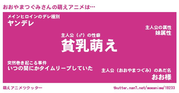 | 男性向けラノベタイトル風あだ名 | 『おおやまつぐみの憂鬱』 |