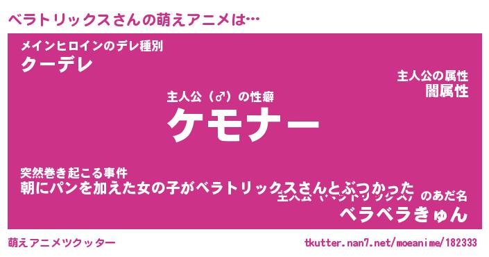 | 男性向けラノベタイトル風あだ名 | 『ベラトリックスアートオンライン』 |