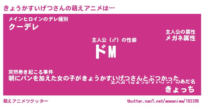 | 女子向けラノベタイトル風あだ名 | 『(仮)きょうかすいげつのやんごとなき事情』 |