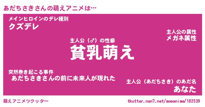 | 男性向けラノベタイトル風あだ名 | 『あだちさきの憂鬱』 |