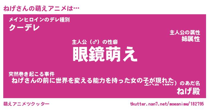| 男性向けラノベタイトル風あだ名 | 『ねげの憂鬱』 |