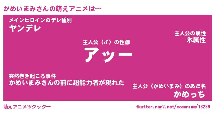 | ファンタジー風あだ名 | 『カメフェル』『エターナルカメイマミー』 |
