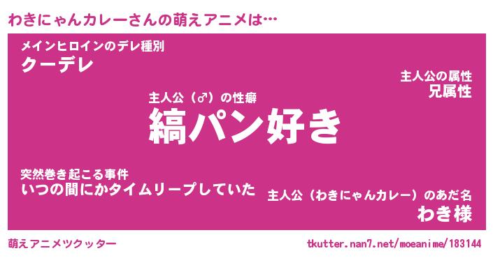 | 男性向けラノベタイトル風あだ名 | 『わきにゃんカレーの憂鬱』 |