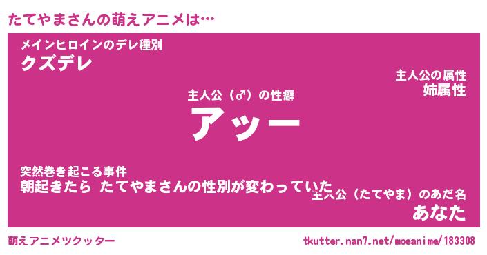 | 男性向けラノベタイトル風あだ名 | 『タテヤマアートオンライン』 |