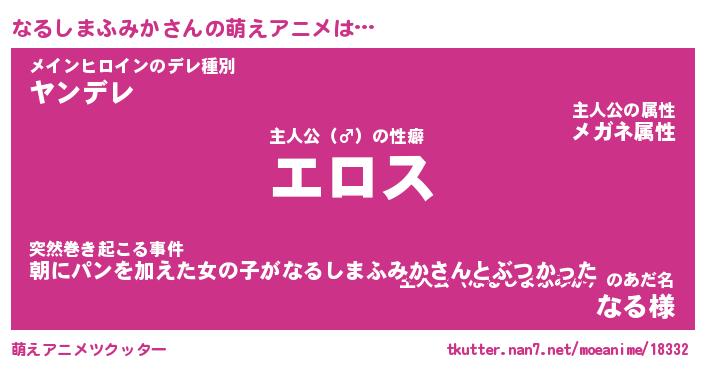 | 肩書あだ名 | 『なるしまふみか御曹司』 |