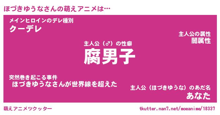 | 男性向けラノベタイトル風あだ名 | 『ホヅキユウナアートオンライン』 |