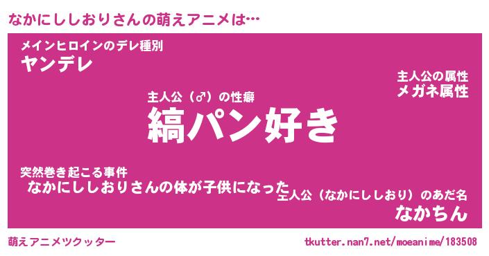 | 男性向けラノベタイトル風あだ名 | 『なかにししおりの憂鬱』 |