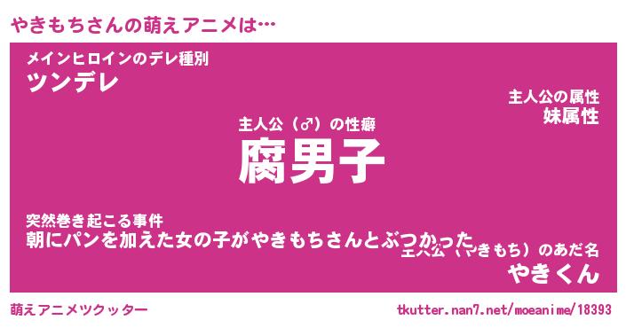 | 胡散臭い通販商品みたいなあだ名 | 『モテモテ間違いなしブレスレット…その名も「やきもち」』 |