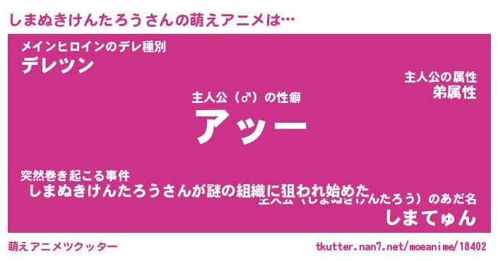| 女子向けラノベタイトル風あだ名 | 『誰かこのしまぬきけんたろうを説明してください! ~契約から始まるウェディング~』 |