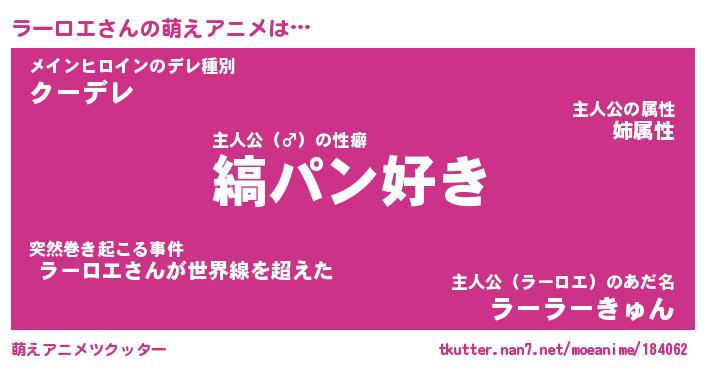 | 男性向けラノベタイトル風あだ名 | 『ラーロエの憂鬱』 |