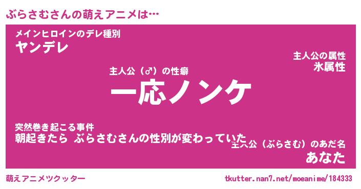 | 女子向けラノベタイトル風あだ名 | 『誰かこのぶらさむを説明してください! ~契約から始まるウェディング~』 |