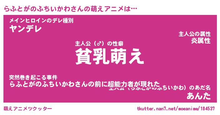 | 胡散臭い通販商品みたいなあだ名 | 『必ず成功するブレスレット…その名も「らふとがのふちいかわ」』 |