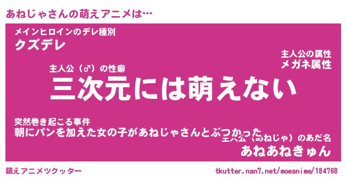 | 意味不明あだ名 | 『ペロリンあねじゃ』『永久保存あねじゃ』 |