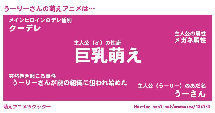 | 男性向けラノベタイトル風あだ名 | 『うーりーの憂鬱』 |