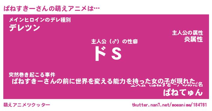| 男性向けラノベタイトル風あだ名 | 『ぱねすきーの憂鬱』 |