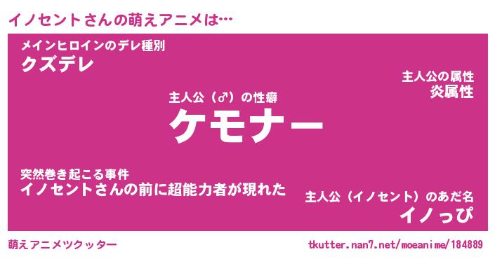 | ファンタジー風あだ名 | 『イノフェル』『エターナルイノセントー』 |