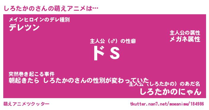 | ヘコむあだ名 | 『しろふぇ~』『なまこ酢』『しろを』 |