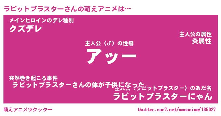 | 男性向けラノベタイトル風あだ名 | 『ラビットブラスターアートオンライン』 |