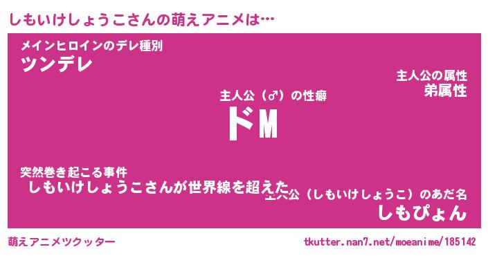 | 男性向けラノベタイトル風あだ名 | 『しもいけしょうこの憂鬱』 |