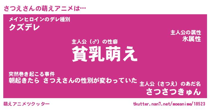 | 男性向けラノベタイトル風あだ名 | 『さつえの憂鬱』 |