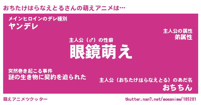 | 男性向けラノベタイトル風あだ名 | 『おちたけはらなえとるの憂鬱』 |