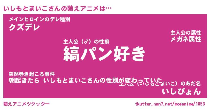 | 男性向けラノベタイトル風あだ名 | 『いしもとまいこの憂鬱』 |