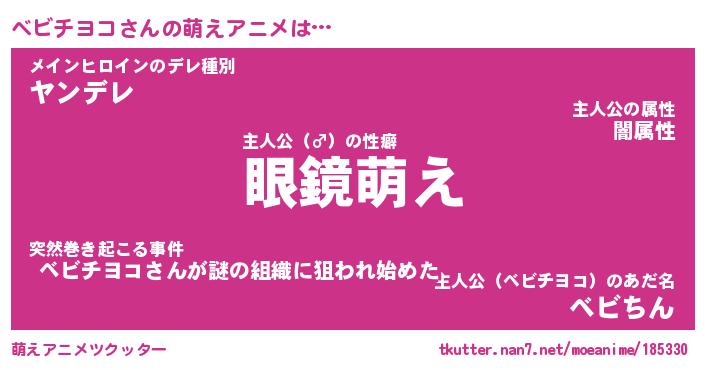 | 男性向けラノベタイトル風あだ名 | 『ベビチヨコの憂鬱』 |