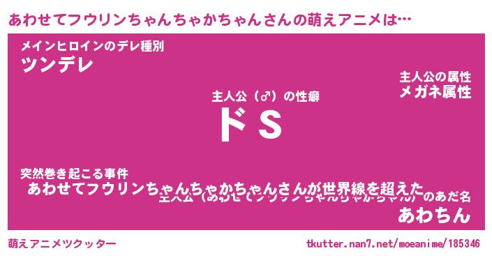 | 胡散臭い通販商品みたいなあだ名 | 『必ず成功する霊験あらたかなお札…その名も「あわせてフウリンちゃんちゃかちゃん」』 |