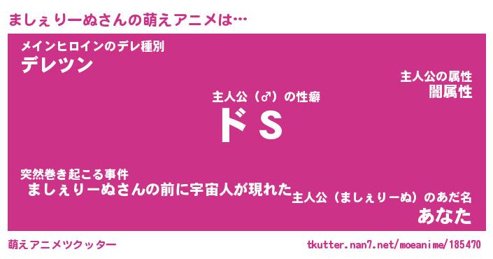 | 男性向けラノベタイトル風あだ名 | 『ましぇりーぬの憂鬱』 |