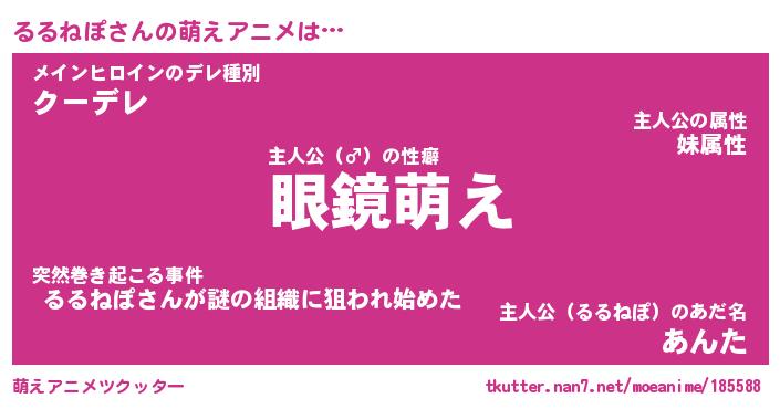 | 男性向けラノベタイトル風あだ名 | 『るるねぽの憂鬱』 |