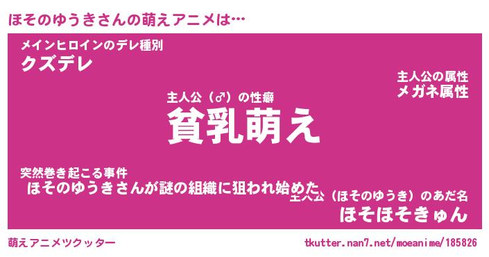 | 男性向けラノベタイトル風あだ名 | 『ほそのゆうきの憂鬱』 |