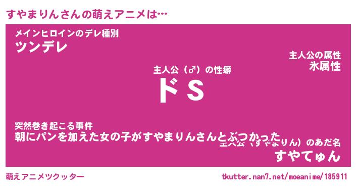 | ファンタジー風あだ名 | 『スヤフェル』『エターナルスヤマリンー』 |