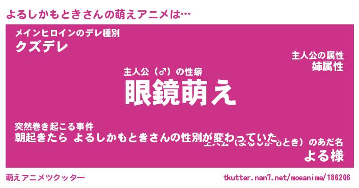 | 肩書あだ名 | 『よるしかもとき社長令嬢』 |