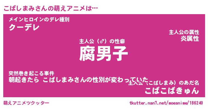 | 男性向けラノベタイトル風あだ名 | 『コバシマミアートオンライン』 |
