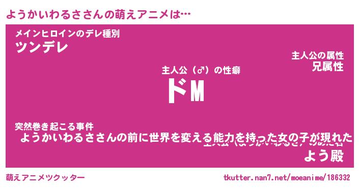 | 女子向けラノベタイトル風あだ名 | 『(仮)ようかいわるさのやんごとなき事情』 |