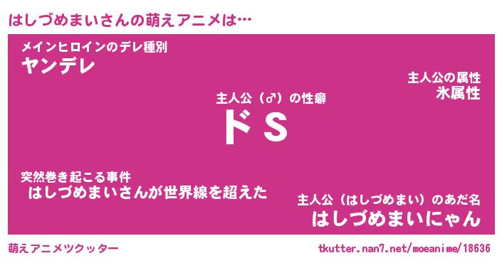 | 男性向けラノベタイトル風あだ名 | 『はしづめまいの憂鬱』 |