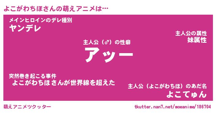 | 男性向けラノベタイトル風あだ名 | 『ヨコガワチホアートオンライン』 |