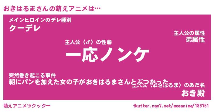 | 男性向けラノベタイトル風あだ名 | 『オキハルマアートオンライン』 |