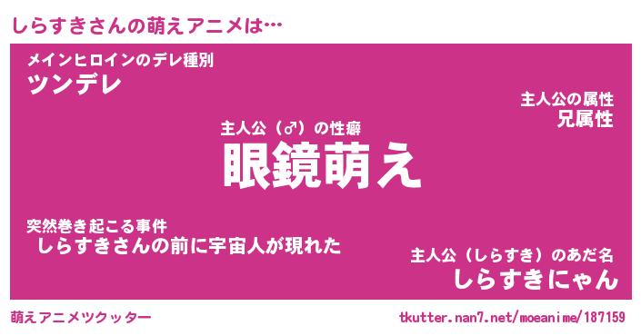 | 男性向けラノベタイトル風あだ名 | 『しらすきの憂鬱』 |
