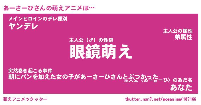 | 男性向けラノベタイトル風あだ名 | 『あーさーひの憂鬱』 |