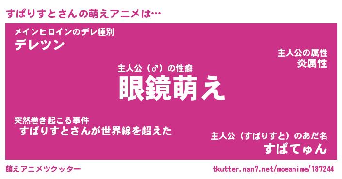 | 男性向けラノベタイトル風あだ名 | 『すばりすとの憂鬱』 |